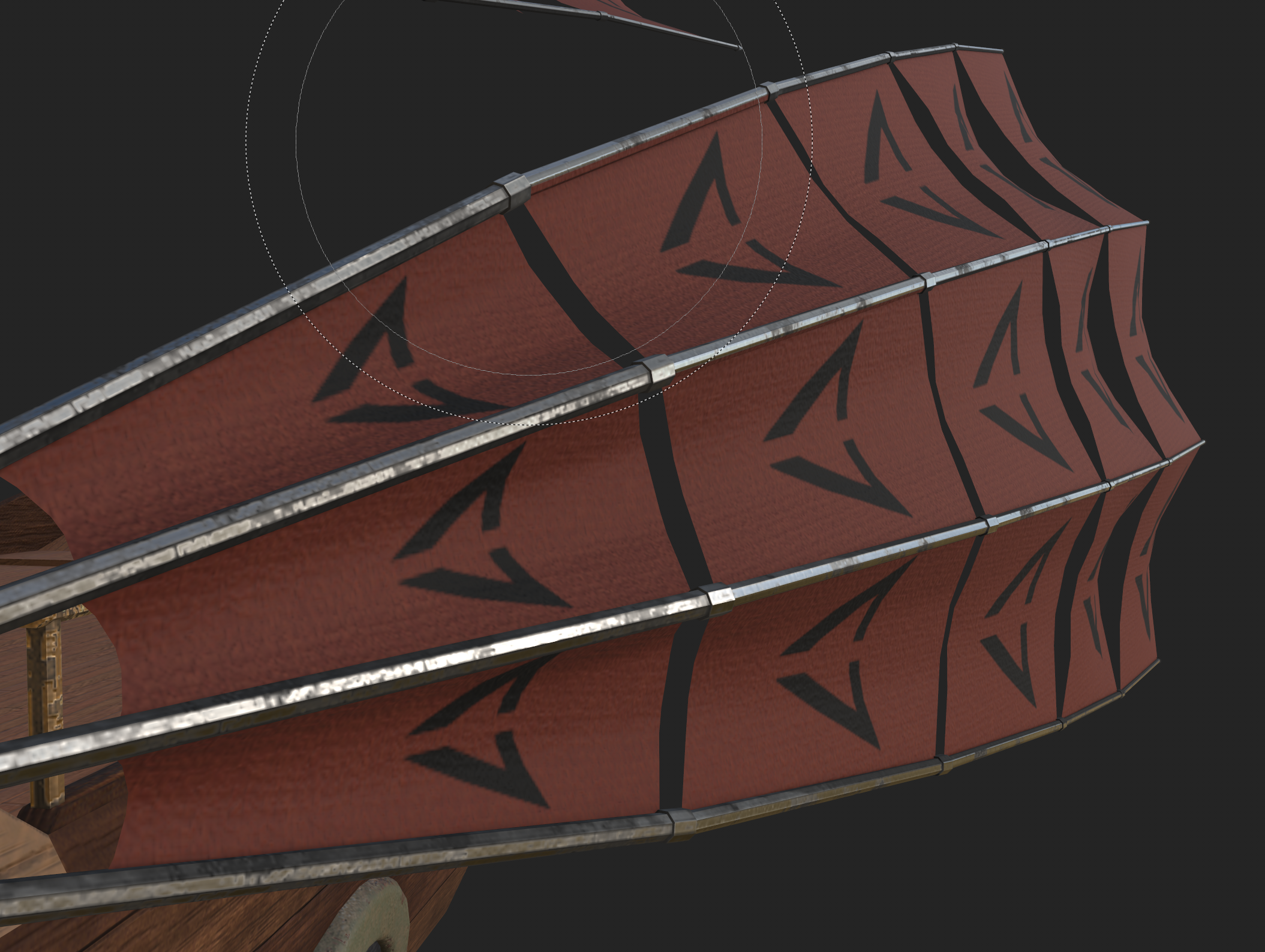 About the Small Ship: The Small ship utilizes stealth and mid-ranged weapons. While making this ship I found it much easier to separate some of the mesh into individual objects. In substance painter I got a little carried away on the sails. I painted the spear and the skull with my mouse; this was before I got a drawing tablet so it took some time. I found how important it is to balance my time when texturing.