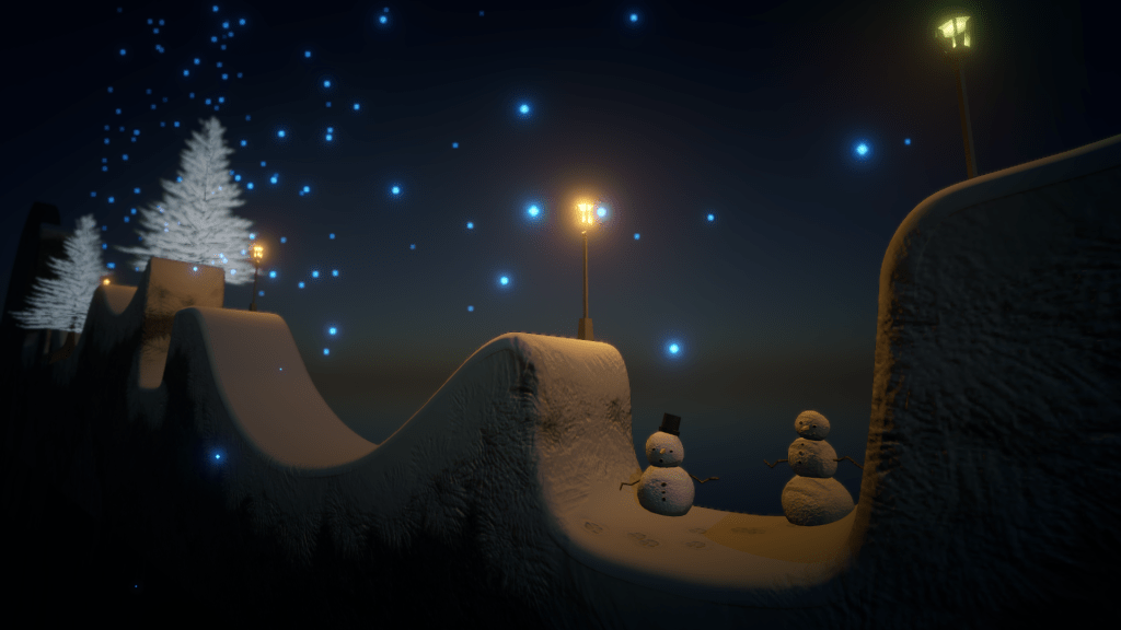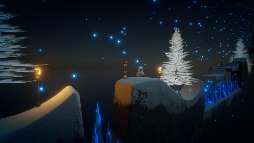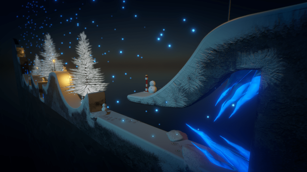 About the Snow: The snow levels feature snowmen that were made by our lead designer. While texturing them, I was very picky about the frost buildup, and I added snow leopard footprints. I added the glowing snowflakes which fall randomly based on a noise pattern. These levels took longer to balance and they are medium difficulty.