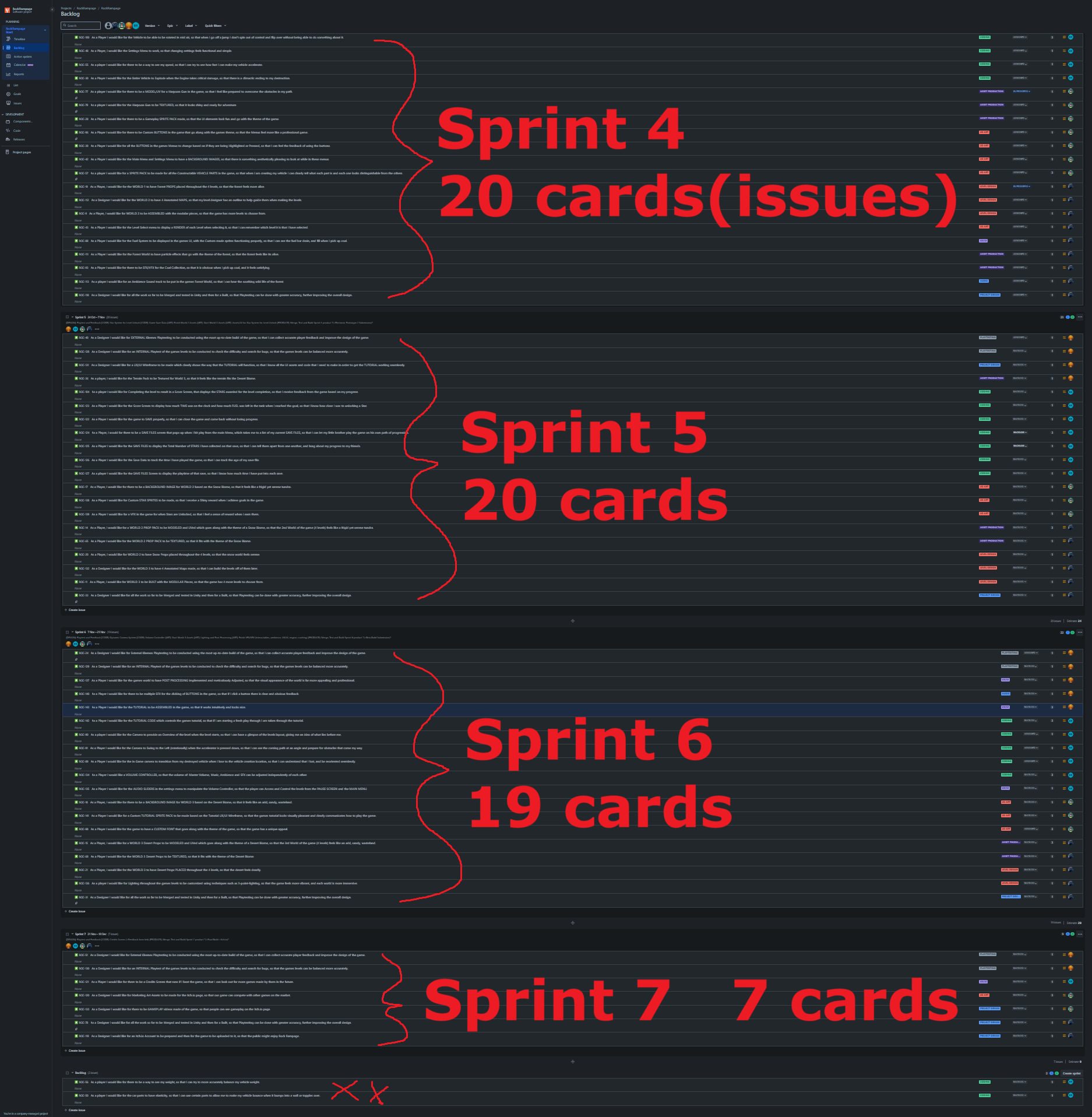 About the Production: In addition to being the team’s Level Designer I was also the Producer. This meant that I had to juggle the management of Jira on top of testing and building the levels. I brainstormed with the Lead Designer and built a backlog. I organized our Sprints considering our feature priorities. I conducted Sprint Kickoffs, and validated cards as they were completed, in accordance with SCRUM. Overall it was a production with a rough start. I struggled to get my team motivated for a while, and our early sprints were pretty bad, but we built communication and eventually made up for lost ground.